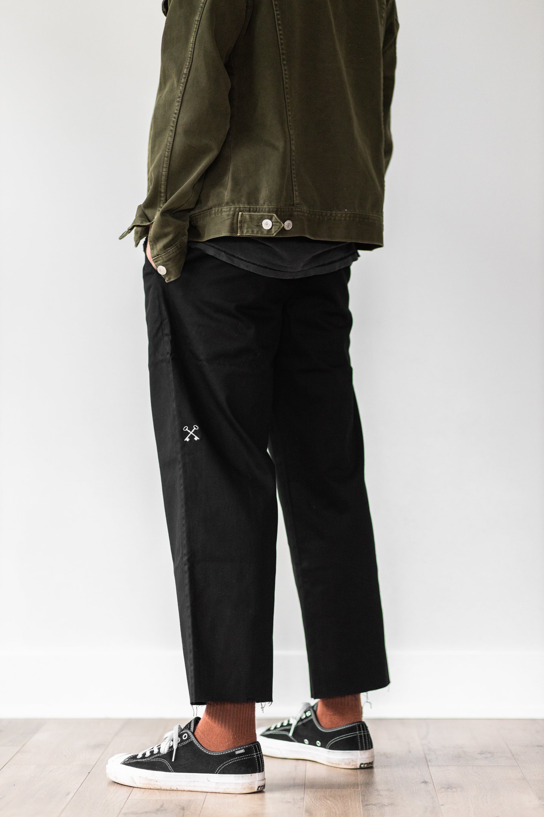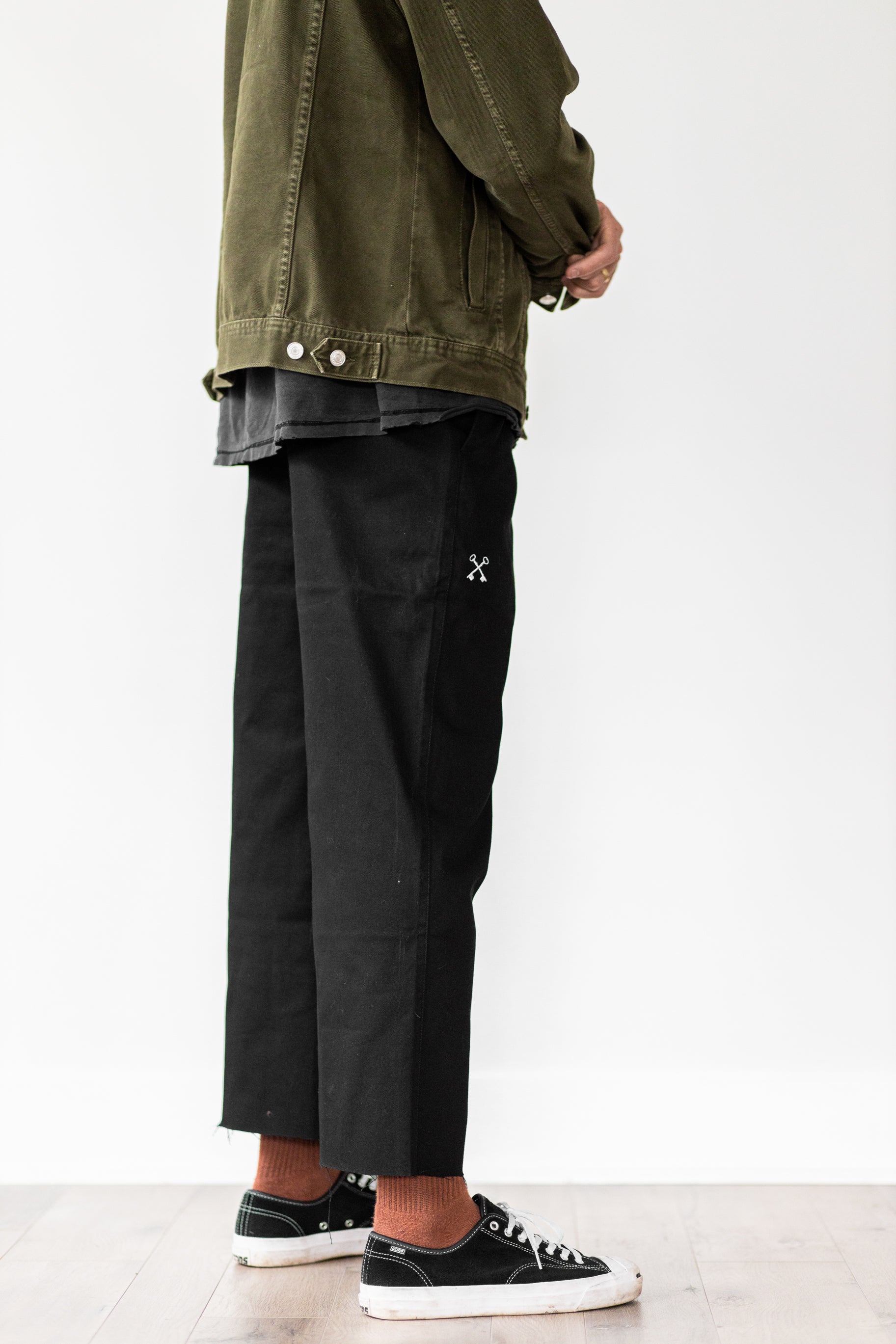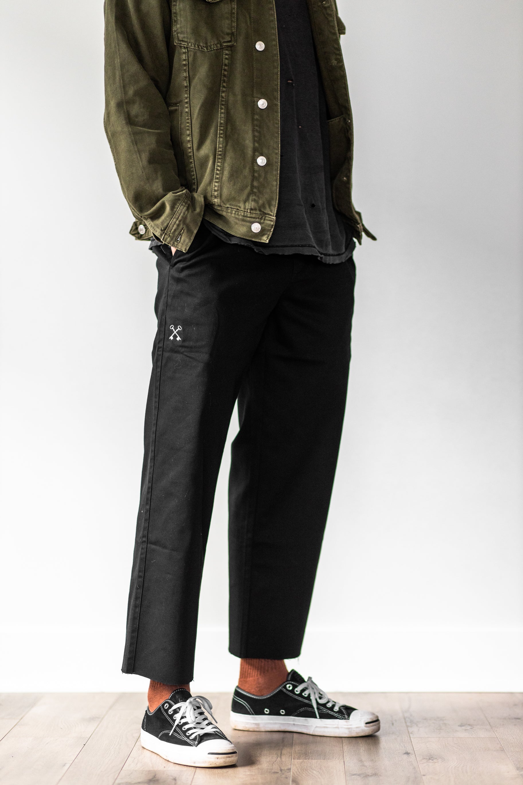 The Everyday Slacks were designed to be the absolute perfect pair of everyday pants, whether you decide to dress them up for keep them casual. They fit relaxed with a straight leg and a slight stretch. The length of pants is up to you. They come at a full standard length but if you decide to cuff them or cut them to rise above the ankle, that's your prerogative. Wear them how you want.